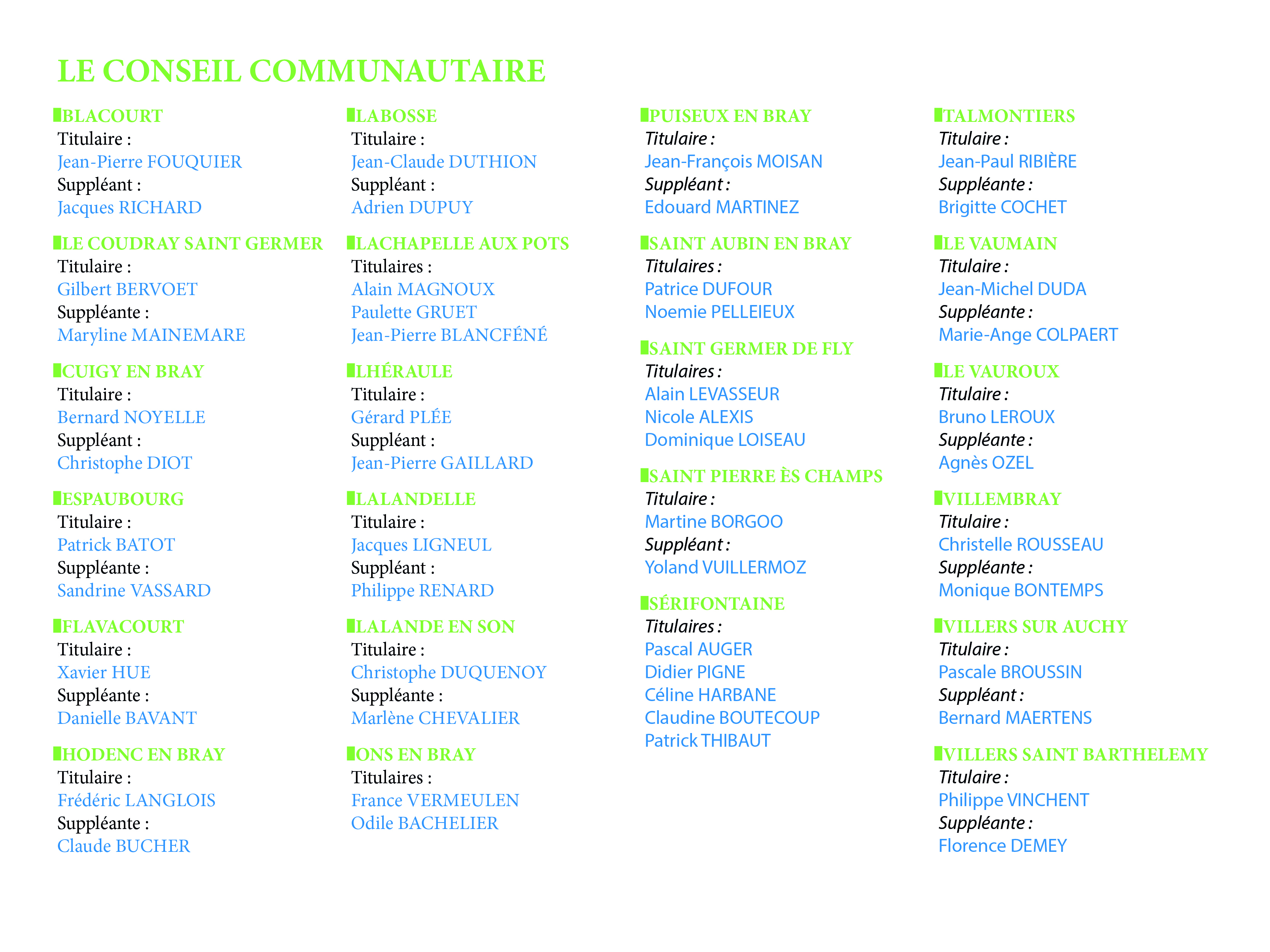 M. Alain LEVASSEUR (Maire Saint Germer de Fly) est en charge de l'assainissement collectif et non collectif, la gestion des déchets, l'eau et l'énergie.